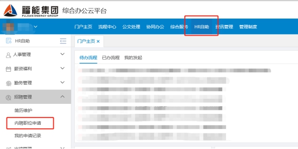 1.集團(tuán)內(nèi)部人員須獲得所在單位同意,并通過(guò)個(gè)人OA賬號(hào)登陸集團(tuán)綜合辦公云平臺(tái):http://10.1.15.15/,點(diǎn)擊HR自助并參照下圖所示路徑進(jìn)入職位申請(qǐng)界面,選擇相應(yīng)的職位在線報(bào)名填寫(xiě)《應(yīng)聘人員登記表》